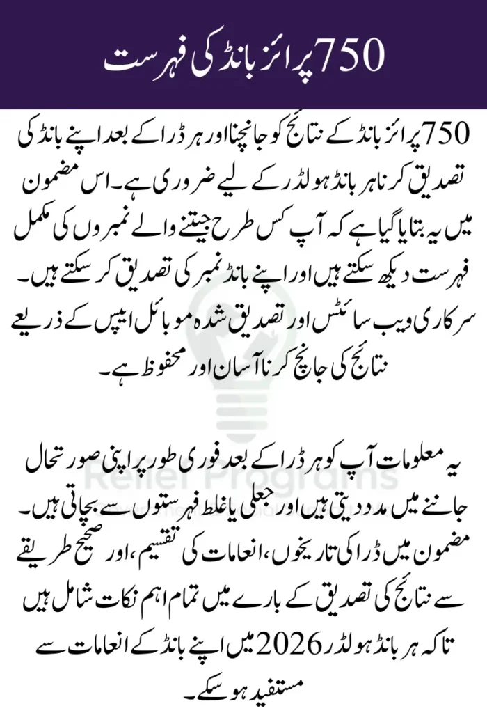 The 750 Prize Bond List 2026 is a valuable resource for anyone holding these bonds. By following official results, keeping track of the draw schedule, and using verified tools, participants can confidently monitor their bonds and claim prizes. Staying informed ensures you make the most of your 750 denomination bonds throughout 2026.