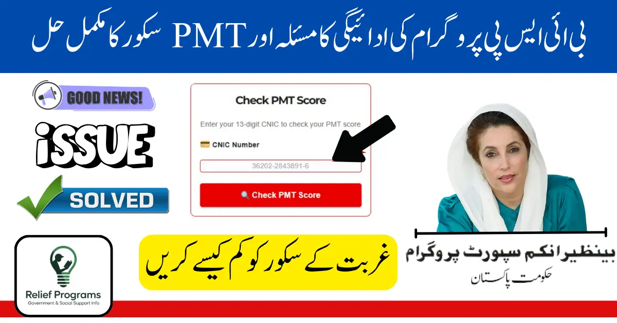 8171 بینظیر انکم سپورٹ پروگرام میں ادائیگی رکنے کا سب سے بڑا مسئلہ PMT اسکور کا زیادہ ہونا ہے۔ یہ اسکور حکومتی ڈیٹا بیس کے ذریعے خودکار طور پر طے کیا جاتا ہے، جس میں خاندان کی معاشی صورتحال کو جانچا جاتا ہے۔ اگر اسکور مخصوص حد سے بڑھ جائے تو ادائیگی فوری طور پر بند ہو سکتی ہے۔