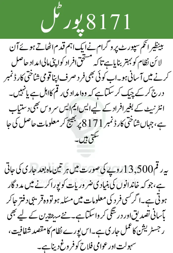 The Government of Pakistan has made significant improvements to its social support system, and the latest changes to the 8171 Portal are a major step forward. This portal, which serves millions of Benazir Income Support Programme (BISP) beneficiaries, now allows people to check their Rs. 13,500 payment status online using their CNIC from anywhere in the country.