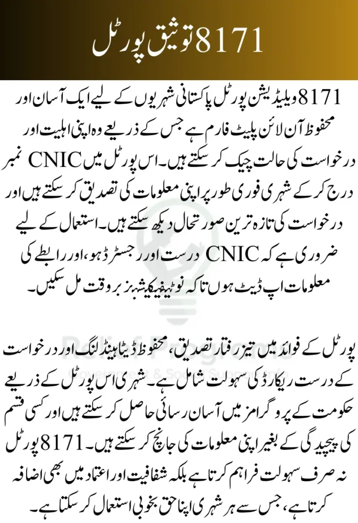 Using the 8171 portal for CNIC validation offers multiple advantages: