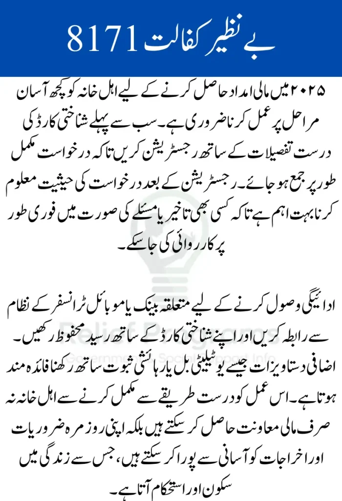 Benazir Kafalat 8171 remains an essential support system for many families in Pakistan. By carefully registering, monitoring status, and collecting funds responsibly, eligible households can secure the Rs. 13,500 payment with minimal hassle. Awareness and preparation ensure that the assistance benefits those who need it most.