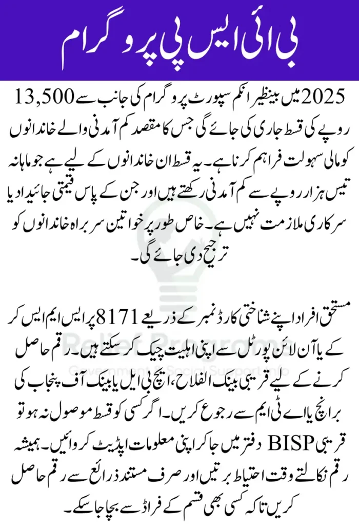 The disbursement of the BISP 13500 New Installment will continue throughout 2025. It’s recommended that beneficiaries confirm payment readiness before visiting ATMs or centers to avoid long wait times or unnecessary trips.
