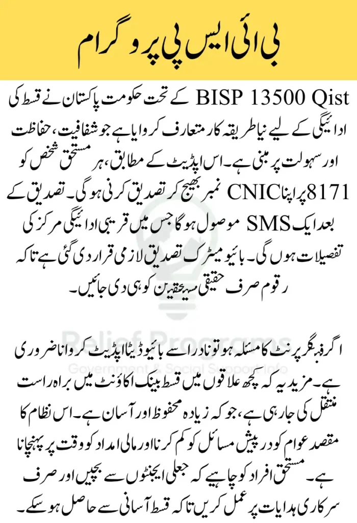 For More Information: BISP 8171 New Update SMS & Online Portal