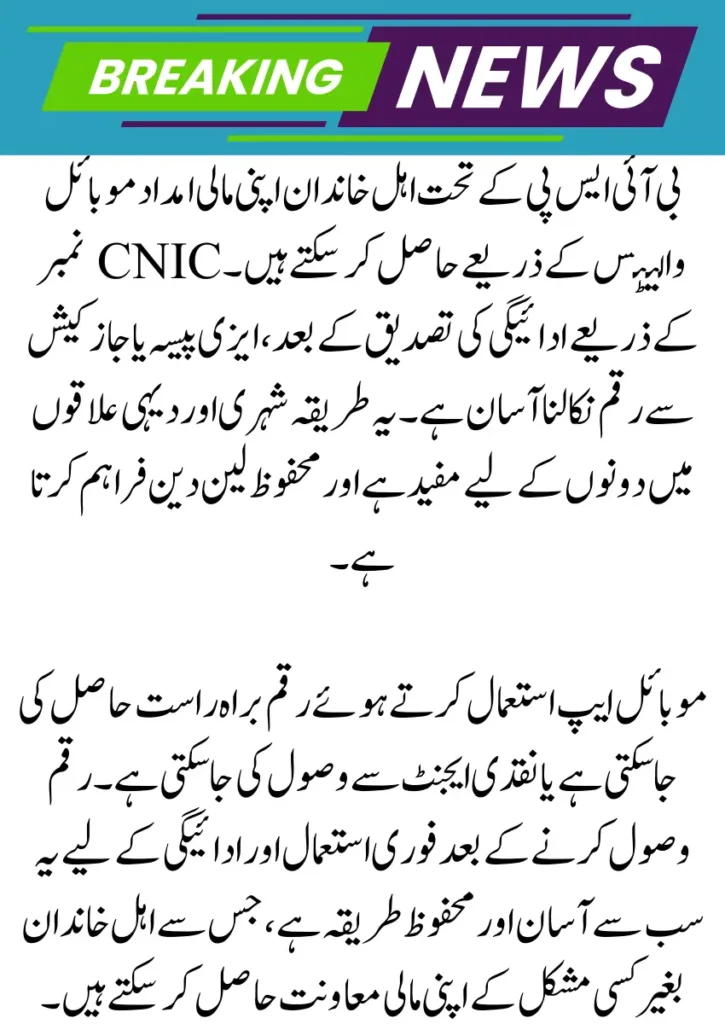 Easypaisa is a convenient option for accessing your funds. After confirming your BISP payment status: