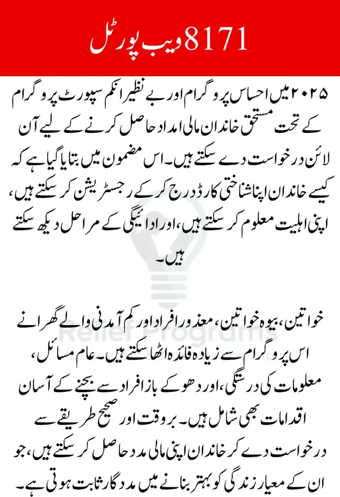 | Portal Access | bisp.gov.pk, 8171 Web Portal |