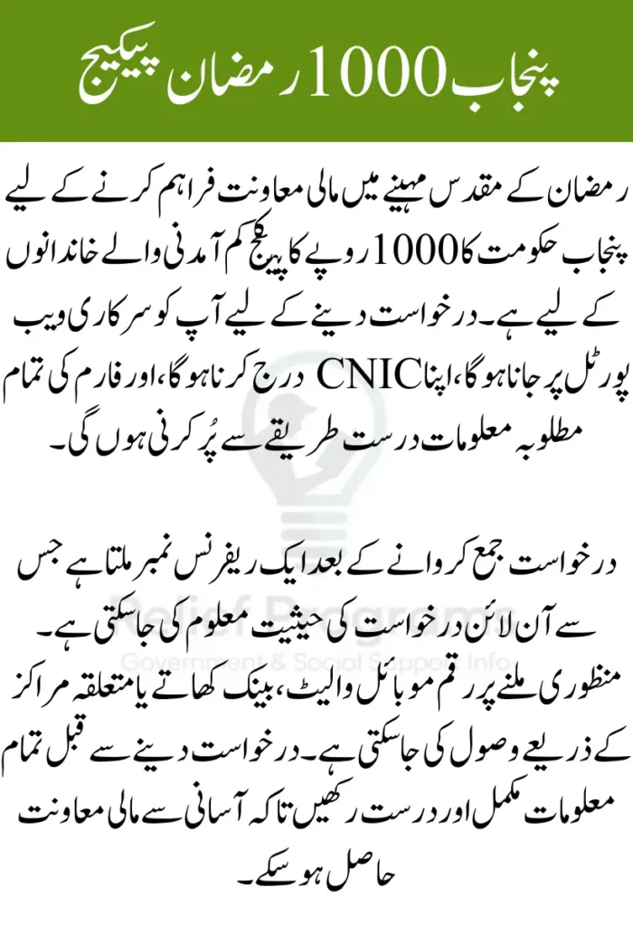 | Program Name | CM Punjab 1000 Ramzan Package |
