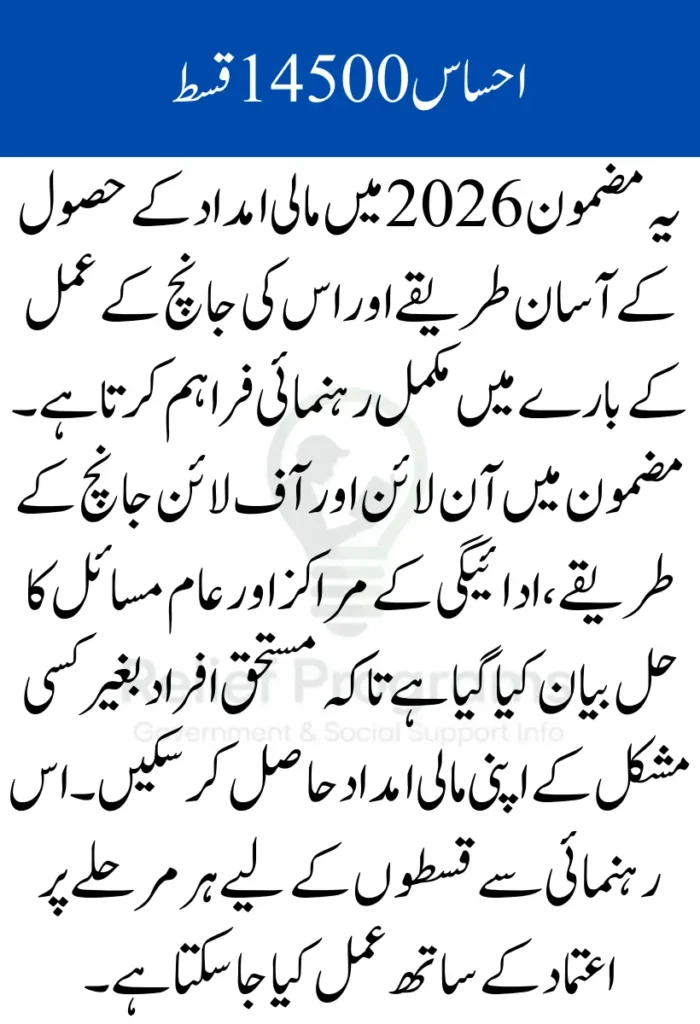 The Ehsaas 14500 Installment program provides financial assistance of PKR 14,500 to low-income families in Pakistan. For 2026, many beneficiaries are looking for information about the installment release schedule and how to verify eligibility.