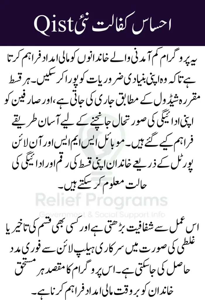Each Ehsaas Kafalat New Qist may vary depending on family size and government allocation. Beneficiaries can confirm the exact amount using online or SMS methods. This ensures the correct amount is received and helps track changes between installments.