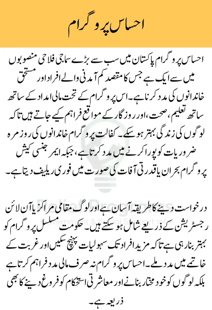 | Registration | Online portal or local Ehsaas centers |