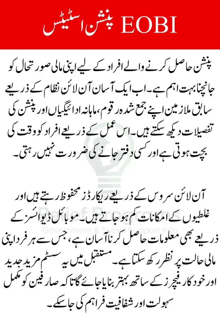 These advantages make EOBI Pension Status Check a practical tool for anyone looking to manage their retirement finances efficiently.