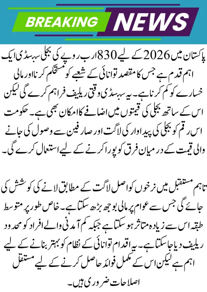 Even though the subsidy provides short-term relief, electricity prices are likely to increase as part of broader reforms. The aim is to gradually move toward a system where tariffs reflect actual costs.