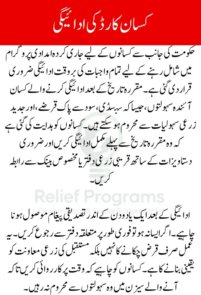| Necessary Documents | CNIC, Kisan Card, mobile number, previous receipts |