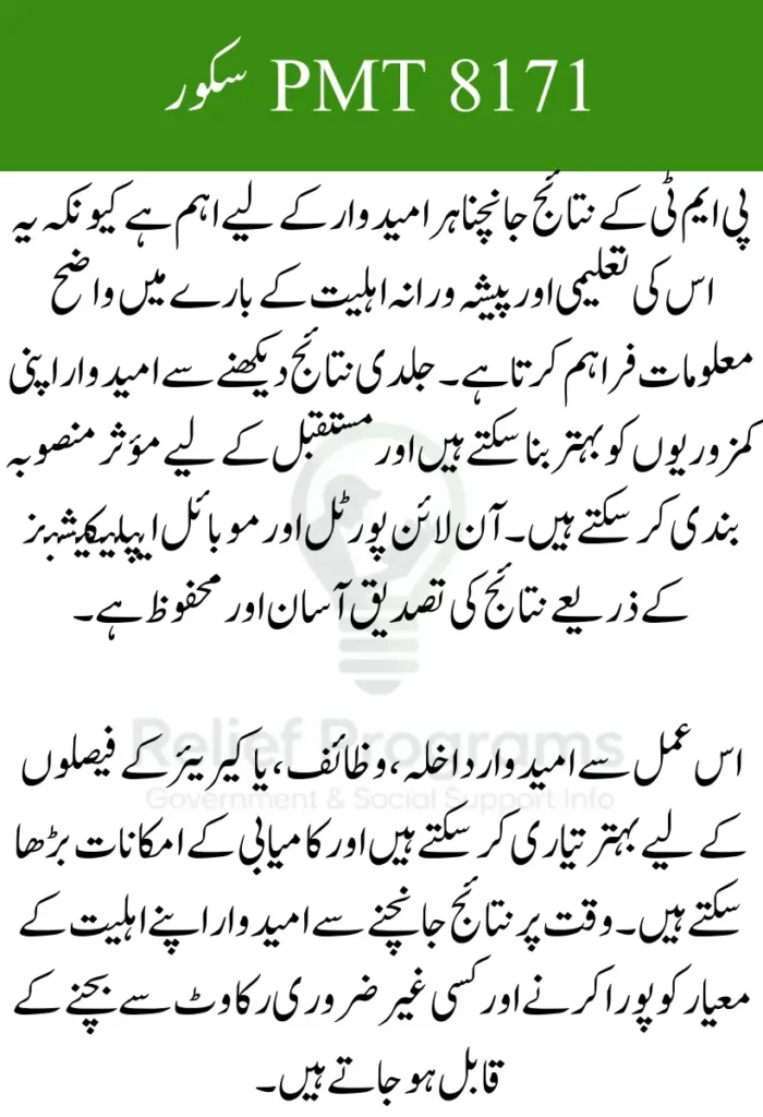 Accessing the 8171 PMT Score Check is straightforward when following official procedures. Candidates usually log in to the designated portal using a CNIC or registration ID to view their scores. Online access ensures the results are accurate, secure, and immediately available. Checking your score early allows candidates to compare their performance against eligibility criteria and make informed plans for any additional preparation or applications.